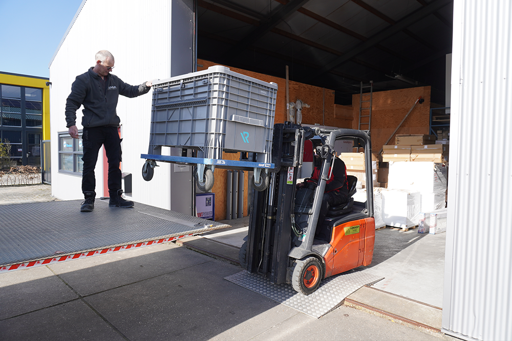 Om het hergebruikproces zo efficiënt mogelijk te laten verlopen, werkt P. de Vries nauw samen met Gévier. "Voorheen deden we het vervoer zelf, maar we merkten dat er dan te veel schade ontstond bij het transport. Nu wordt alles op een gestructureerde manier opgehaald, opgeslagen en schoongemaakt, waardoor de kwaliteit behouden blijft," legt Out uit.