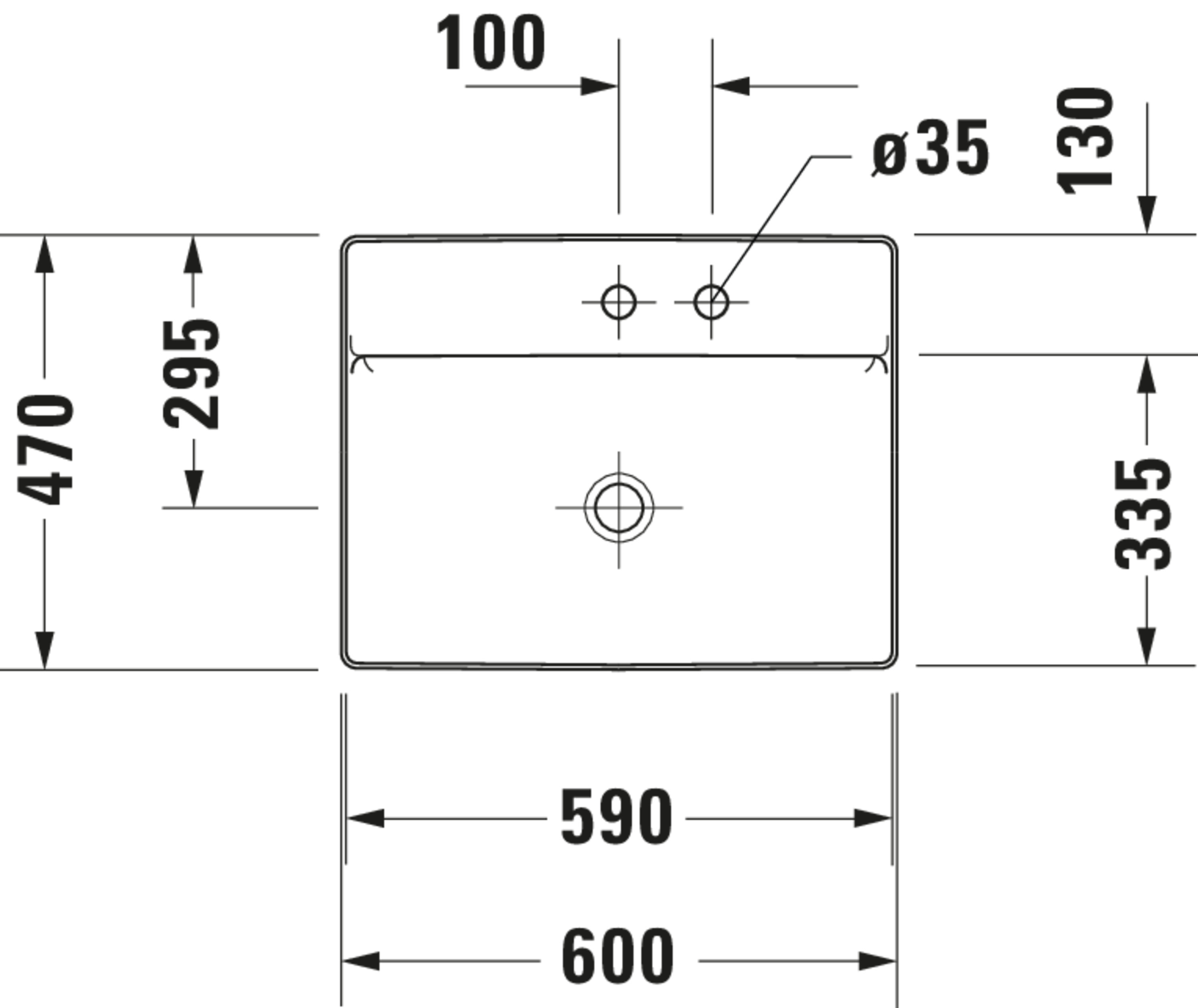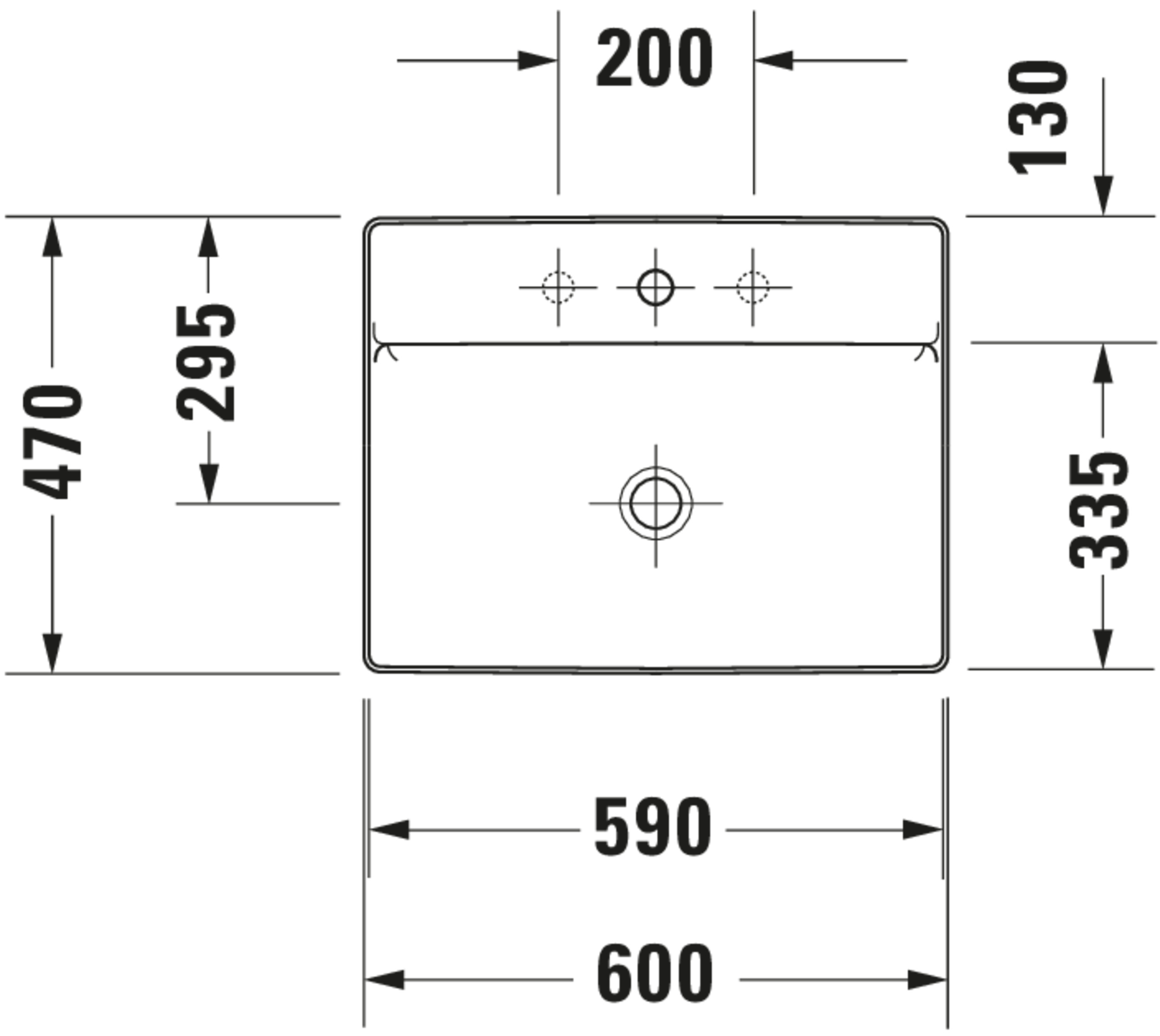 DURASQUARE #235460 opzetwastafel 600mm wit met kraangat geslepen onderzijde Duravit