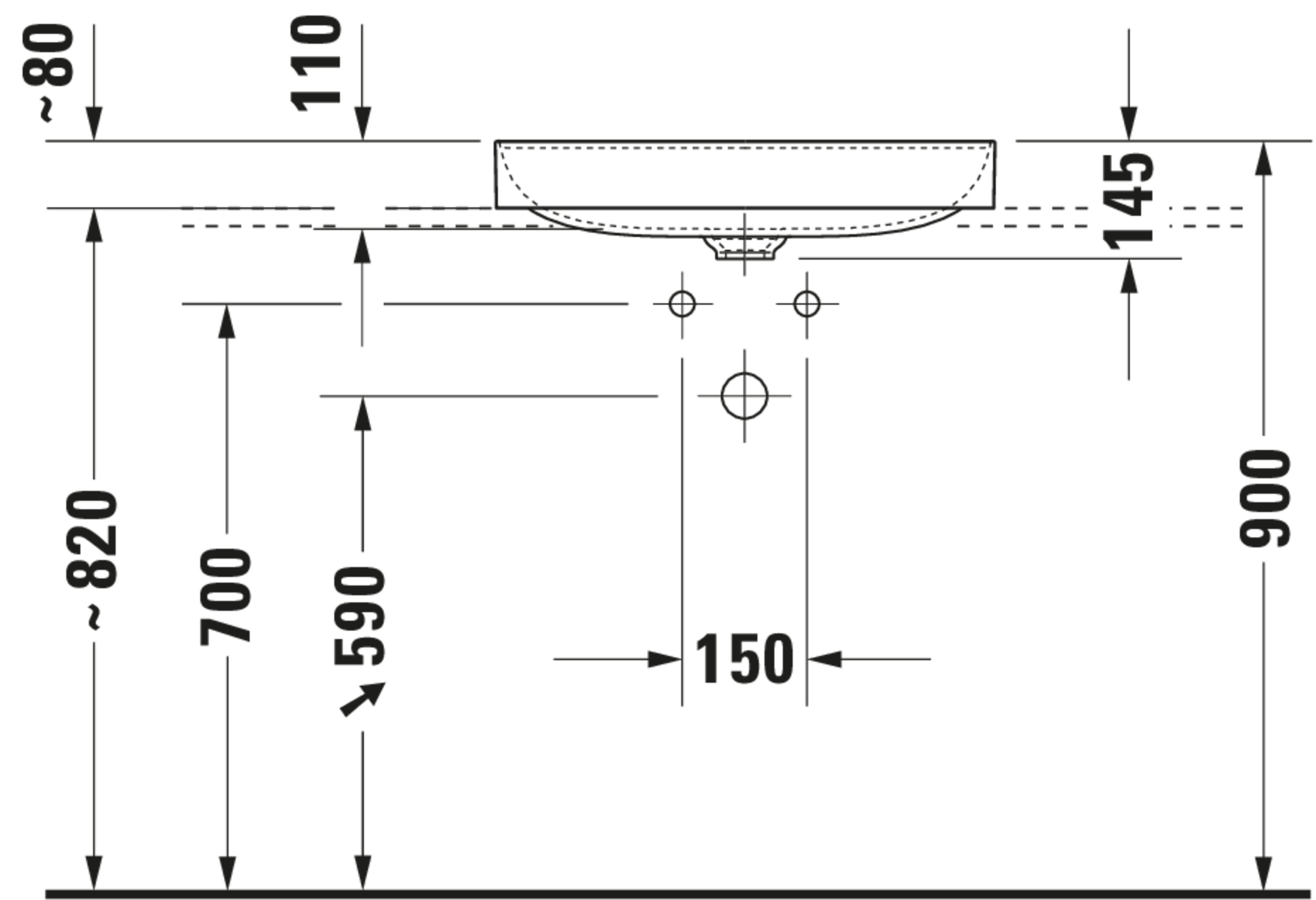 - Met afvoerplug en geïntegreerde overstort: Nee