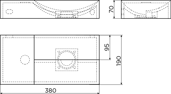 VALE fontein 380mm zonder kraangat kraanbank links geïntegreerde afvoer wit glans keramiek Clou