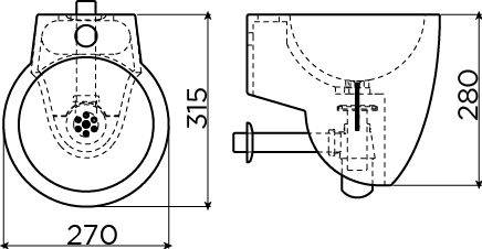 Flush 6 fontein 270x315mm mat zwart met kraangat sifon/plug Clou