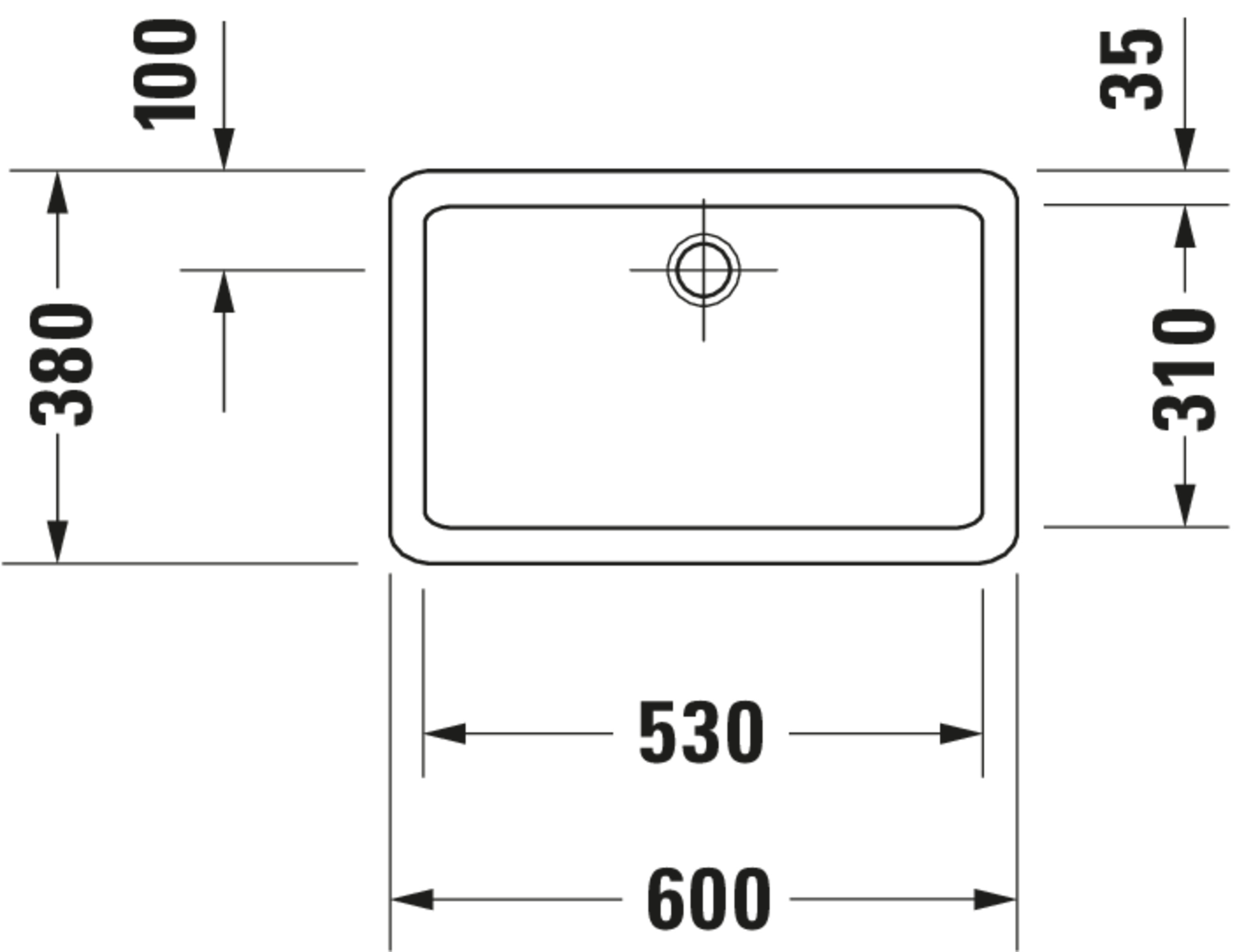 VERO #045560 opzetwastafel 600mm wit zonder kraangat geslepen onderzijde Duravit