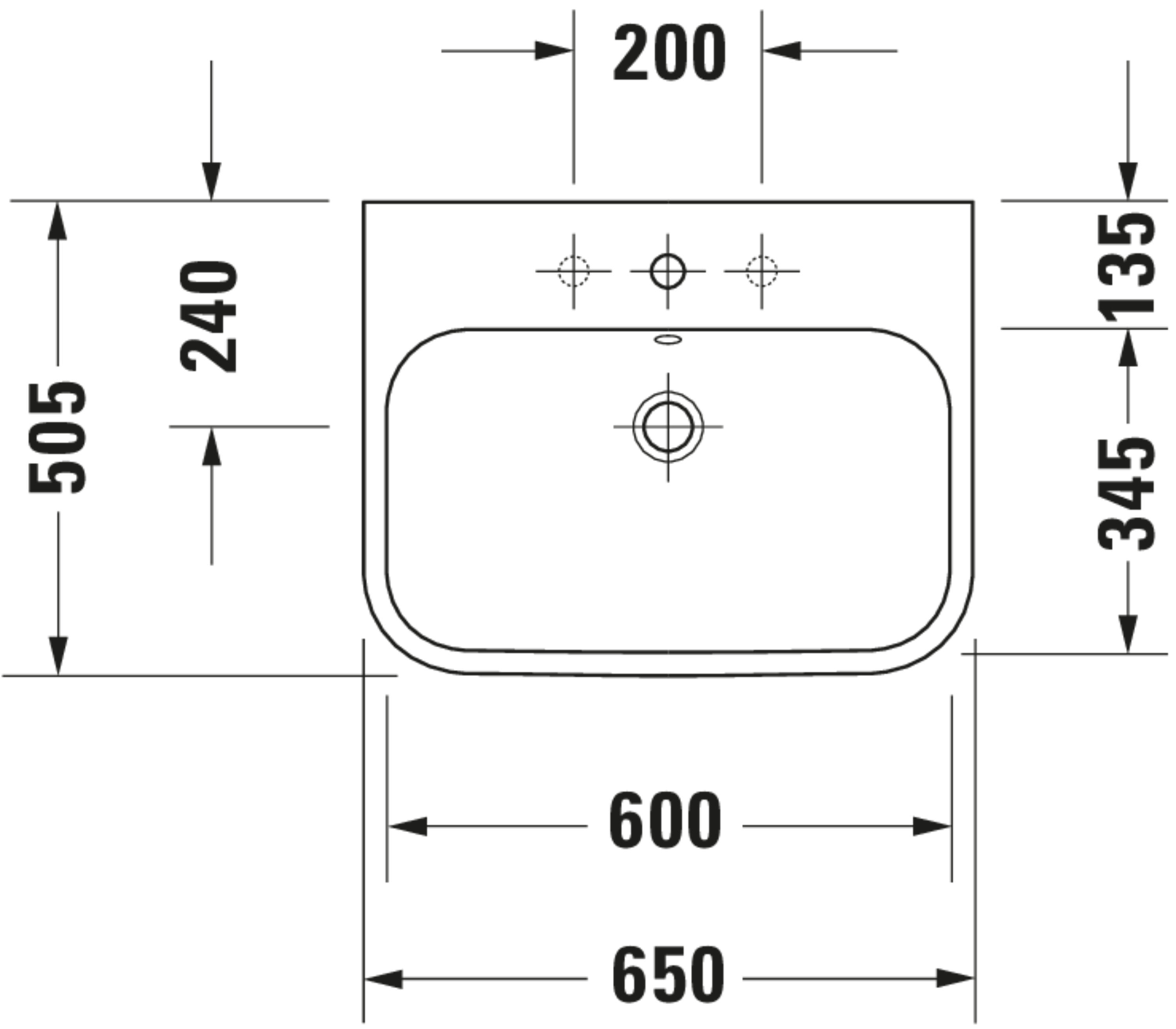 HAPPY D.2 #231865 wastafel 650mm wit met kraangat met overloop Duravit