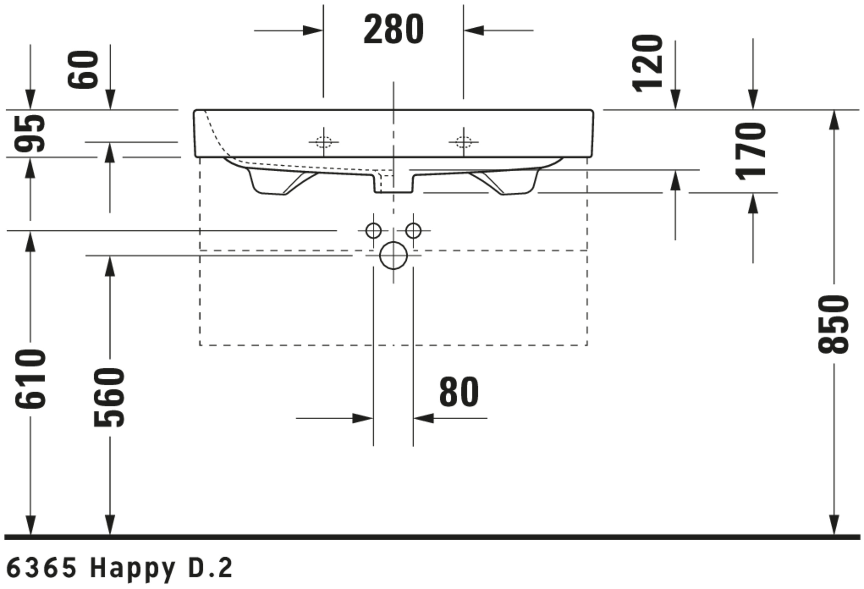 HAPPY D.2 #231880 wastafel 800mm wit met kraangat met overloop Duravit