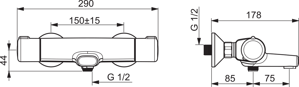 • Maat aansluiting aanvoer: 1/2" (15)