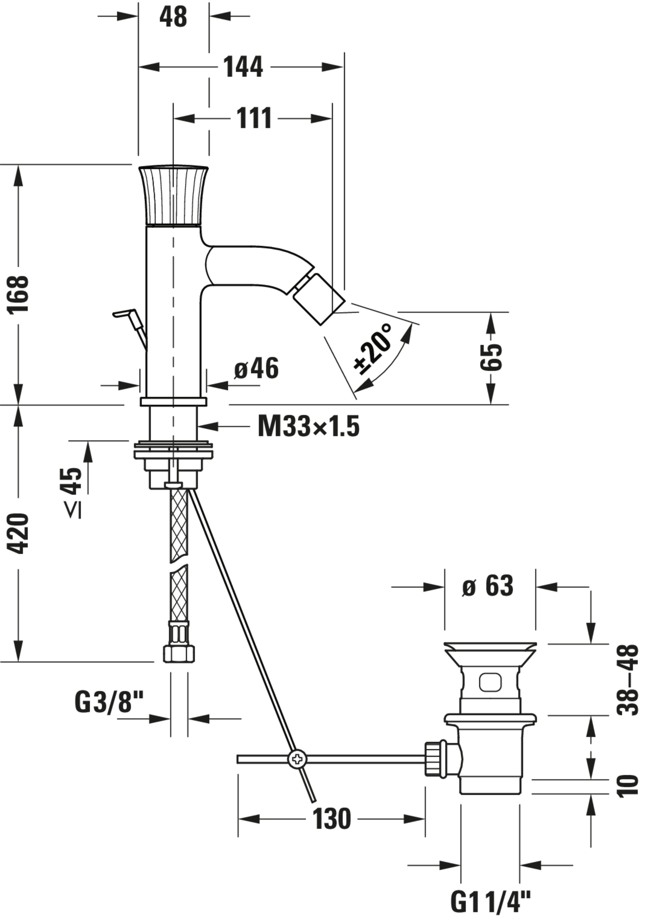 White Tulip 1-hendel bidetmengkraan chroom 48x144x168mm Duravit