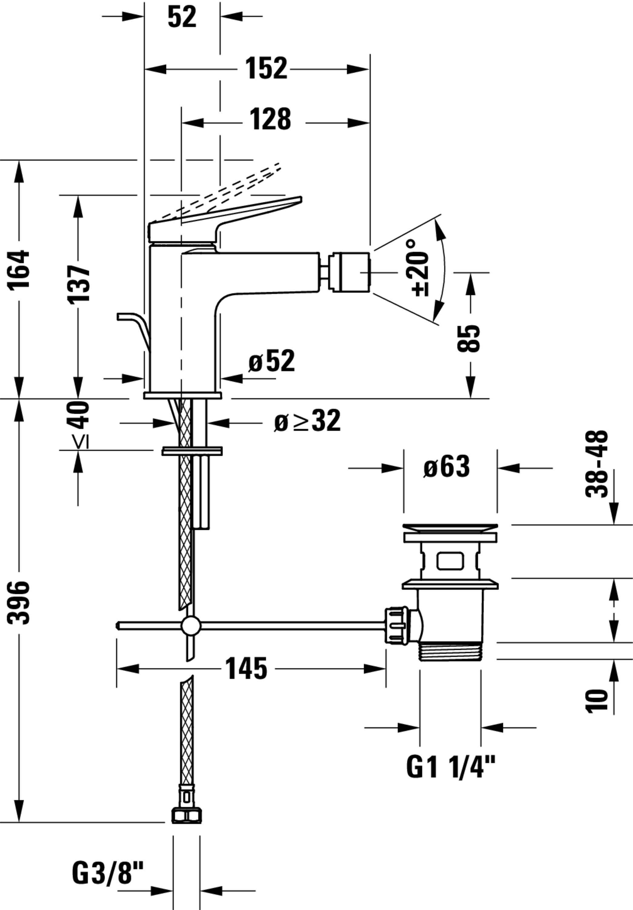 Wave 1-hendel bidetmengkraan chroom hoogglans incl. waste-inrichting Duravit