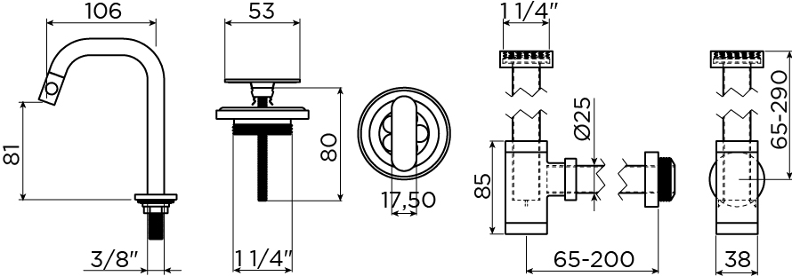 Kaldur koudwaterkraan 3/8"aansl. mat zwart incl. afvoerplug + sifon Clou