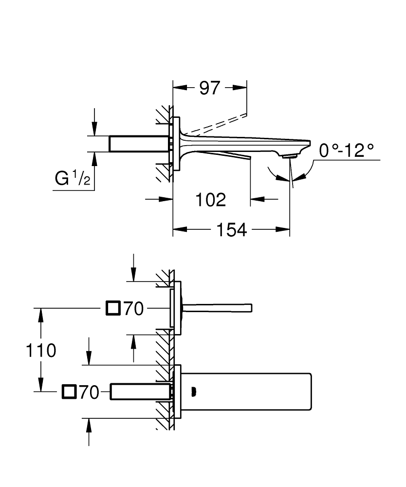 - Voorsprong uitloop: 154 mm