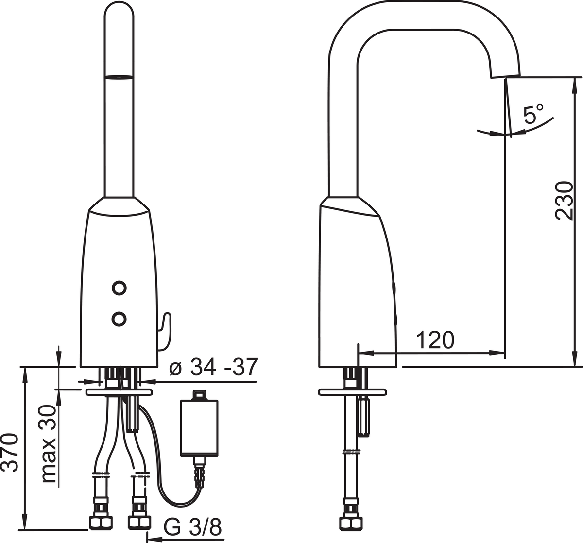 Wastafelmengkraan hoog elektr spr.170mm hyg.spoeling BT HANSAELECTRA HANSA