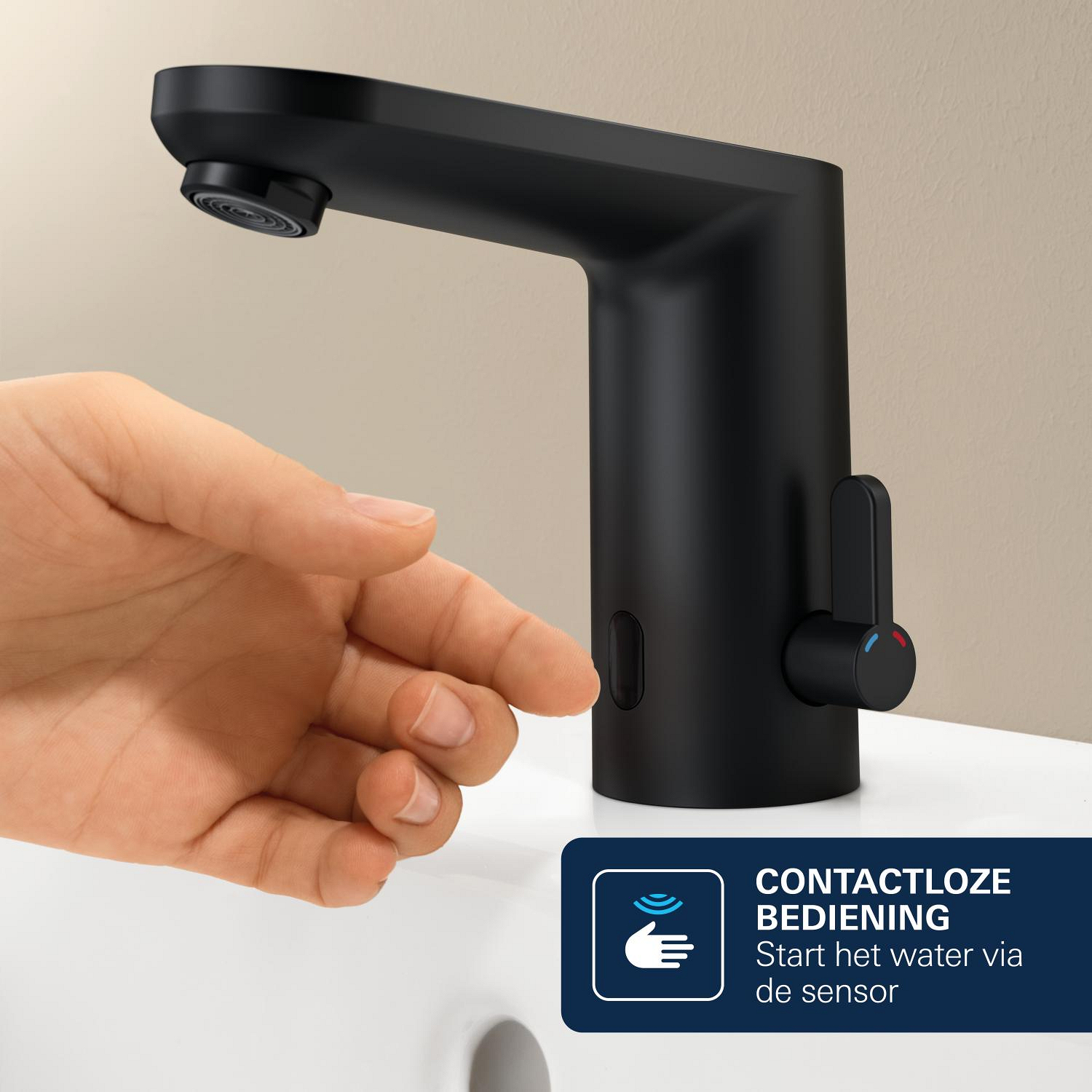 Get E infrarood wastafelkraan electronisch 6V mat zwart Grohe