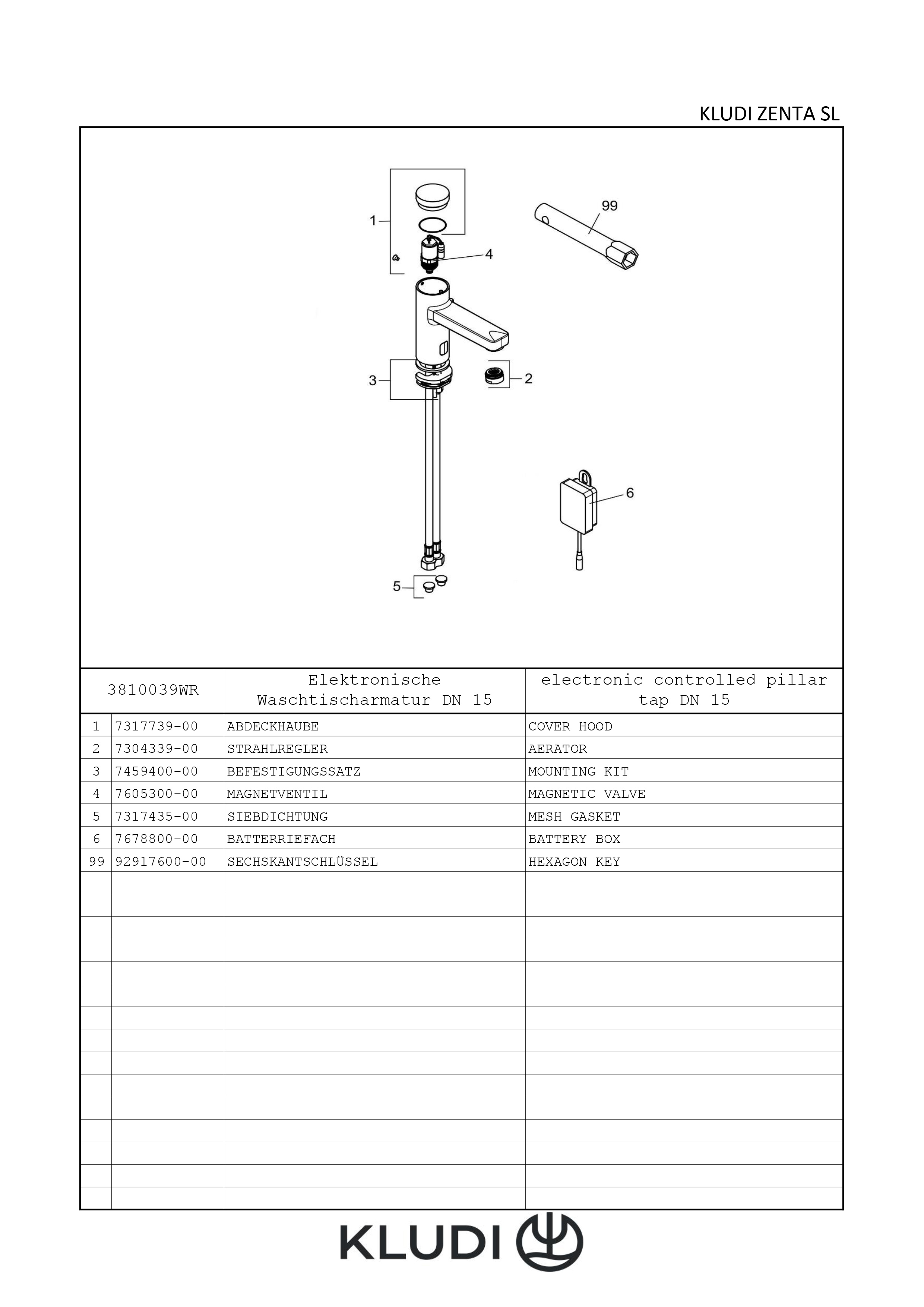 Zenta-E Sl Wast.Mngkr.Sensor Batt.Mat.Zw Kludi