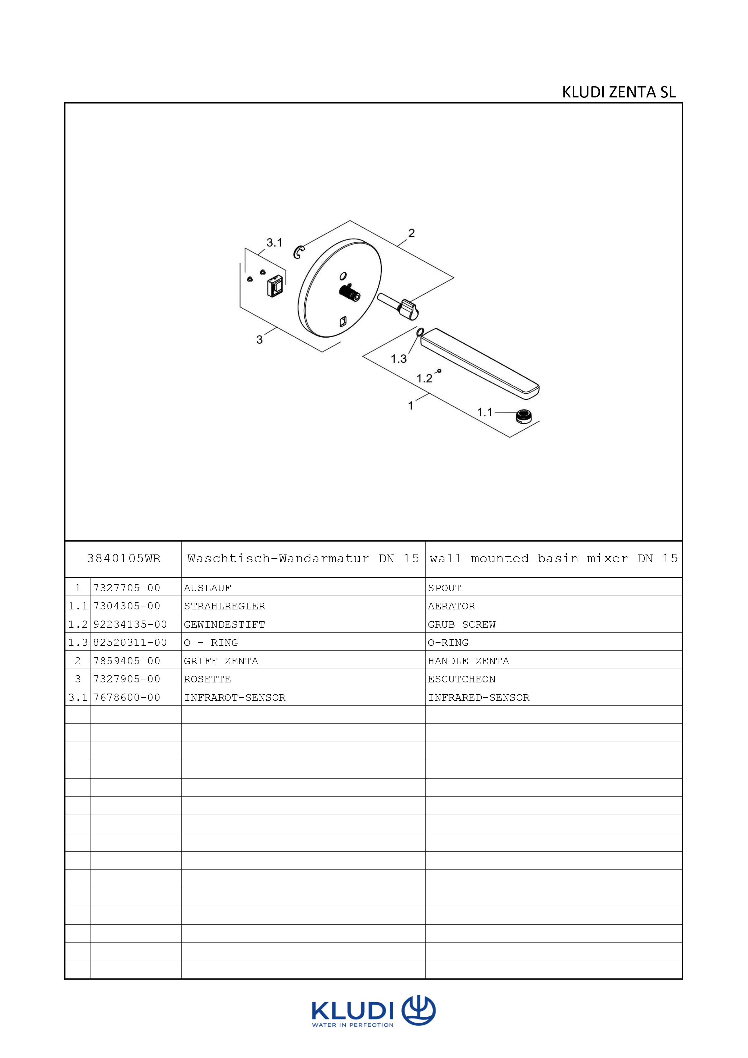 Zenta-E Sl Wast. Afm.Set Sensor 240 2L Kludi