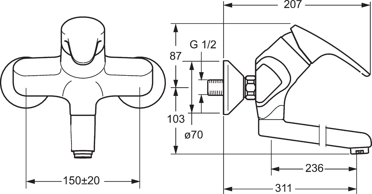 • Voorsprong uitloop: 311 mm