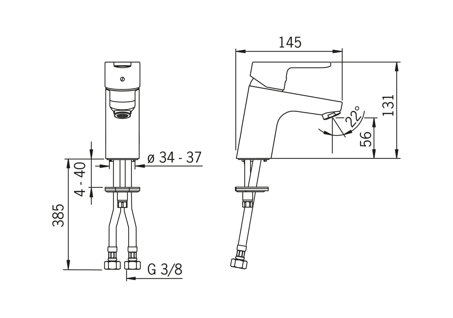 - Maat aansluiting aanvoer: 3/8" (10)