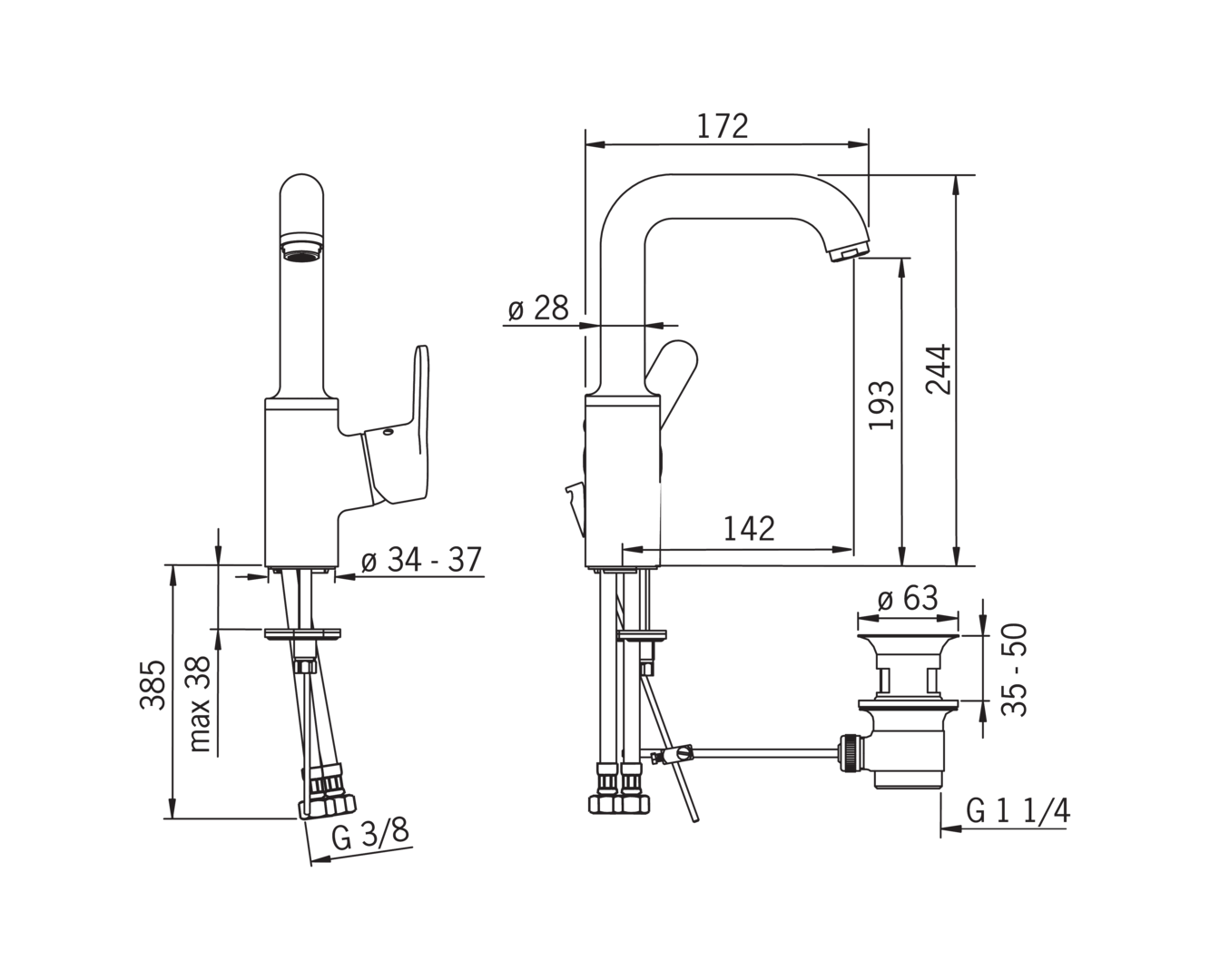 • Maat aansluiting aanvoer: 3/8" (10)