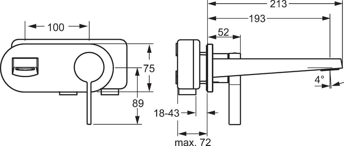 Wandafbouwset wandmengkraan vaste uitloop Loft HANSA
