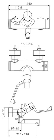 Wandopbouw wastafelkraan VITUSVW-AH-T thermo. TD 270mm Schell