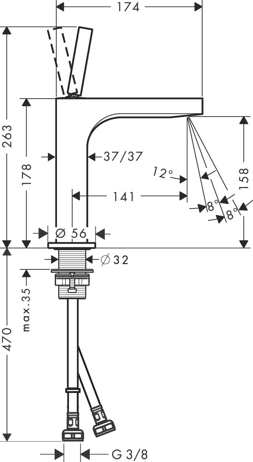 • Maat aansluiting aanvoer: 3/8" (10)