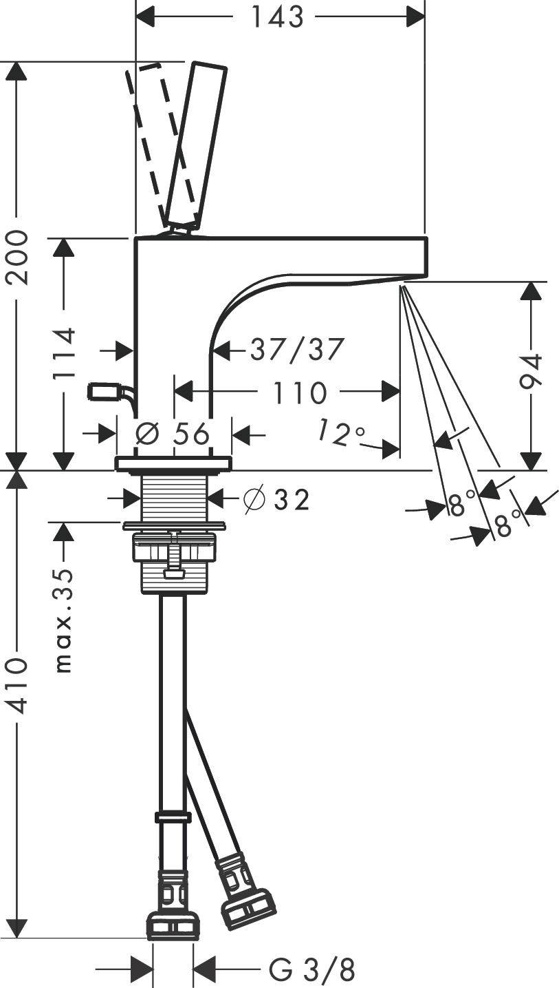 - Maat aansluiting aanvoer: 3/8" (10)