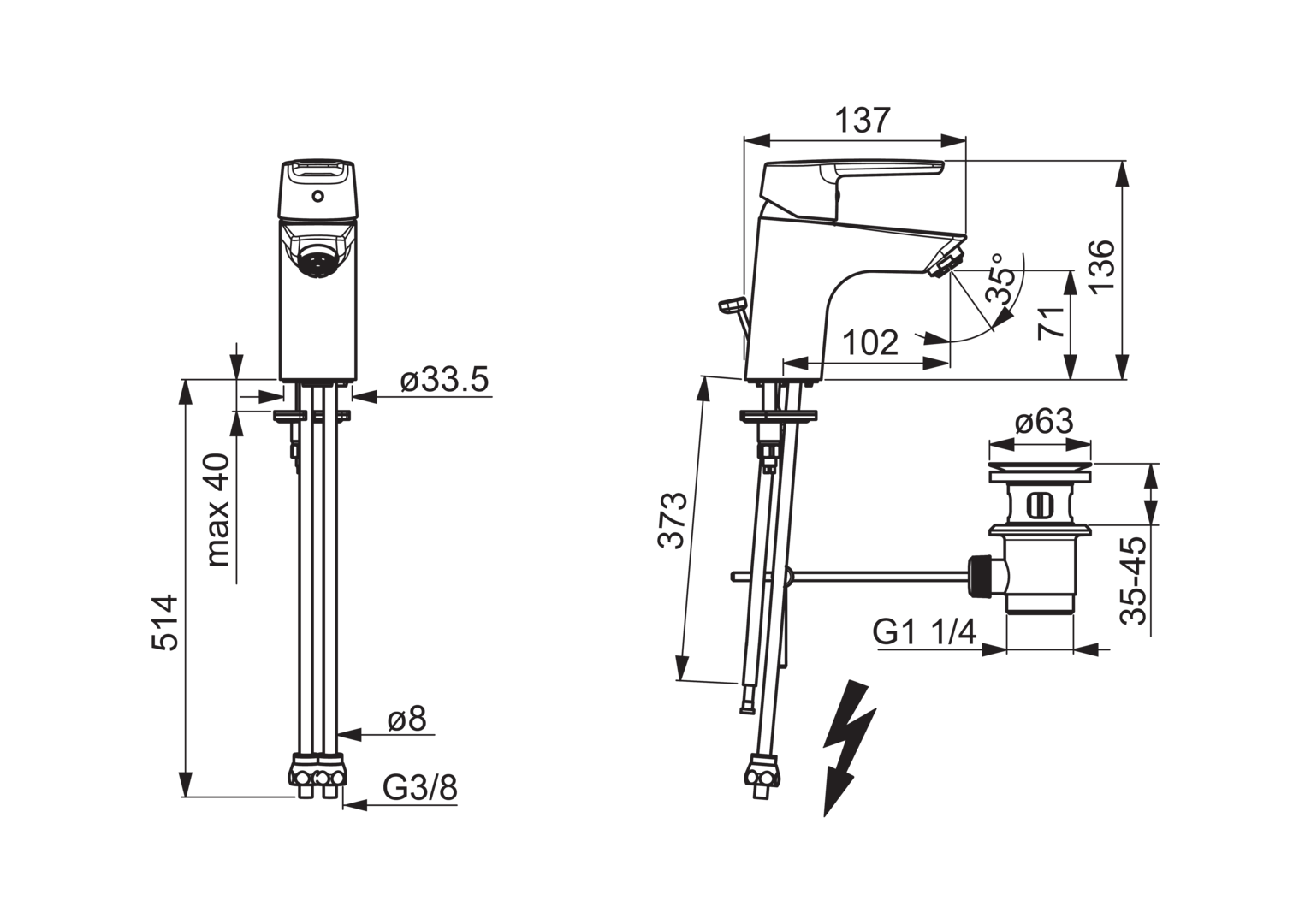 - Type afvoeraansluiting: Pop-up plug met verticale hefboom