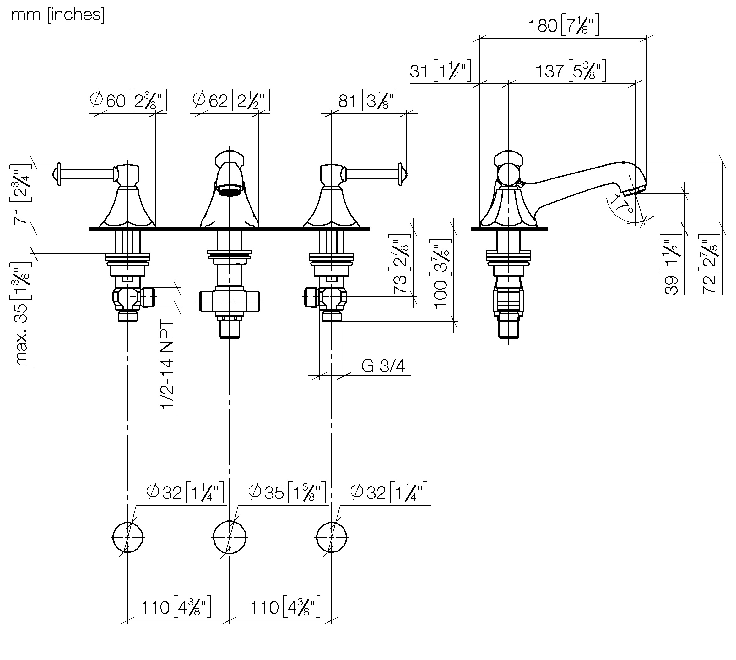 • Diameter boorgat kraan: 35 mm