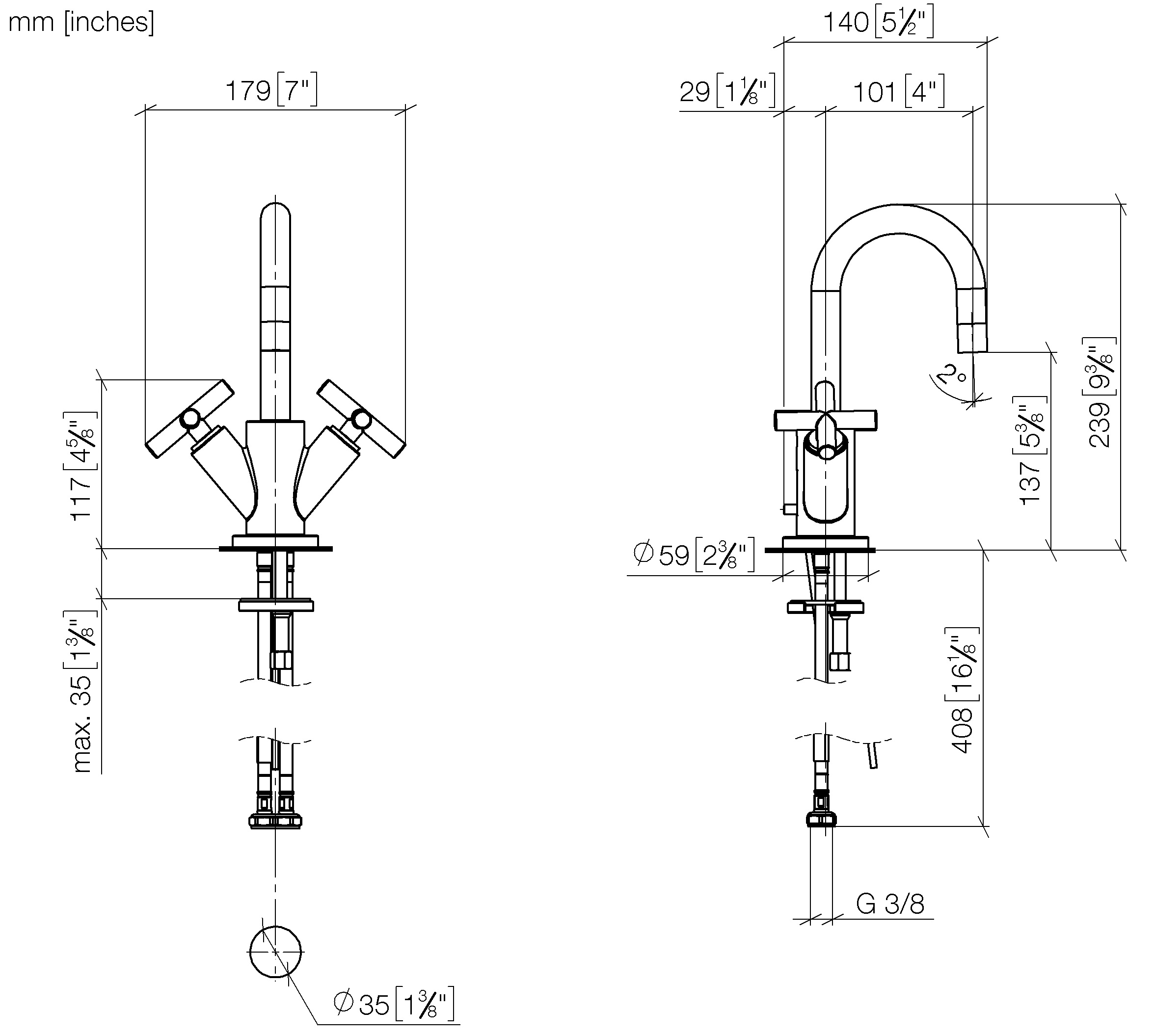 - Opbouwhoogte onderkant kraanmondstuk: 134 mm