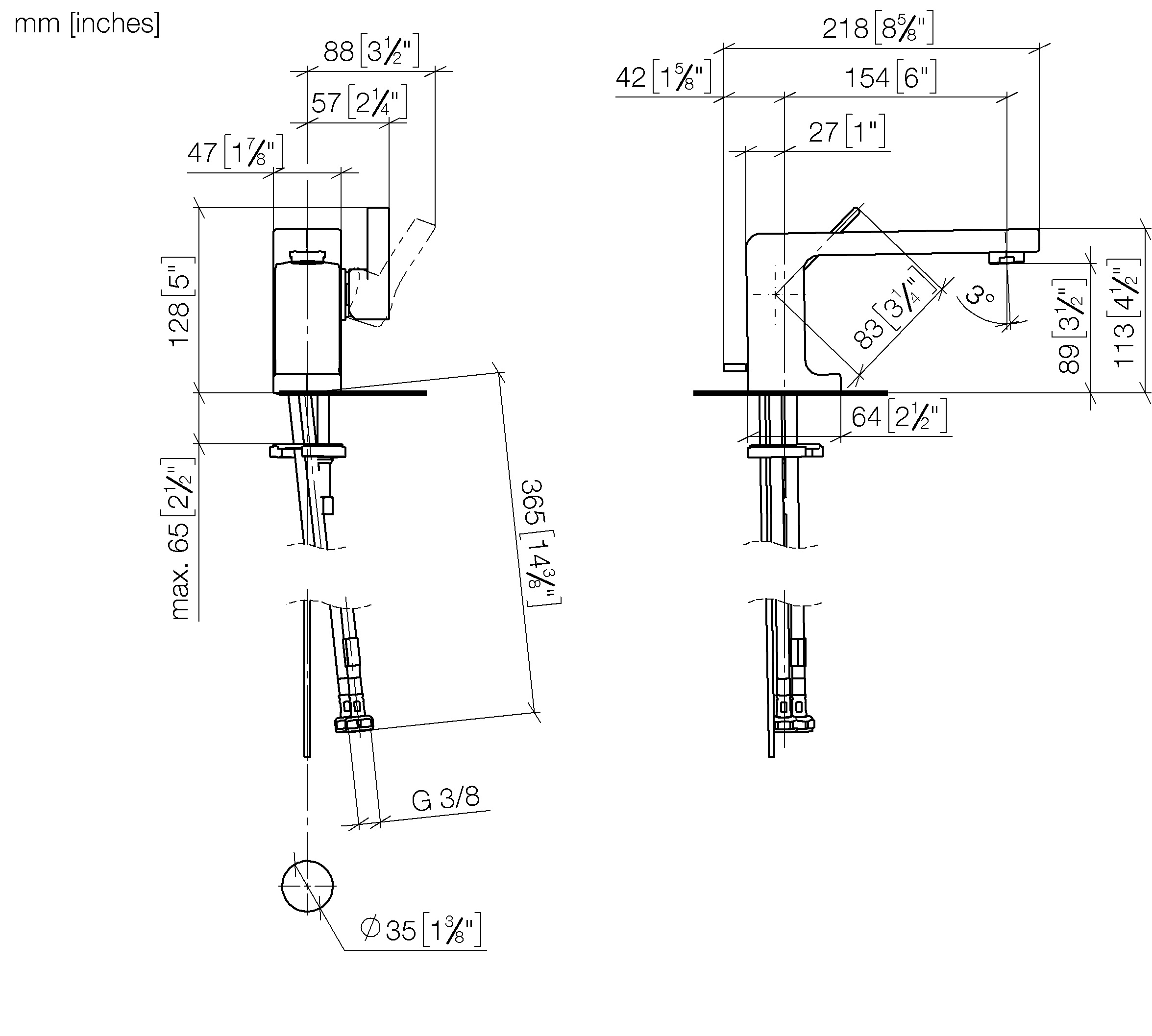 - Opbouwhoogte onderkant kraanmondstuk: 90 mm