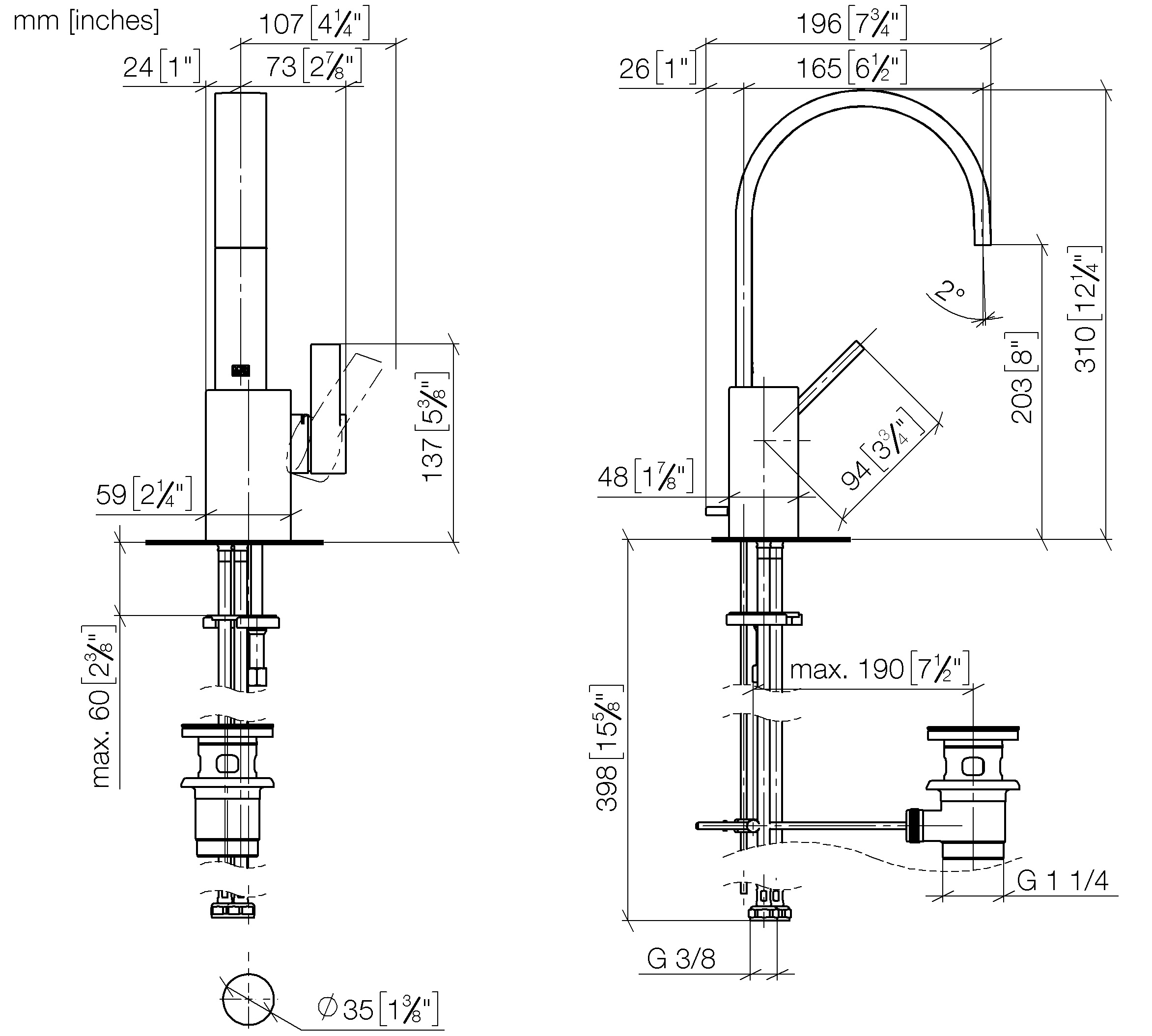 • Opbouwhoogte onderkant kraanmondstuk: 202 mm