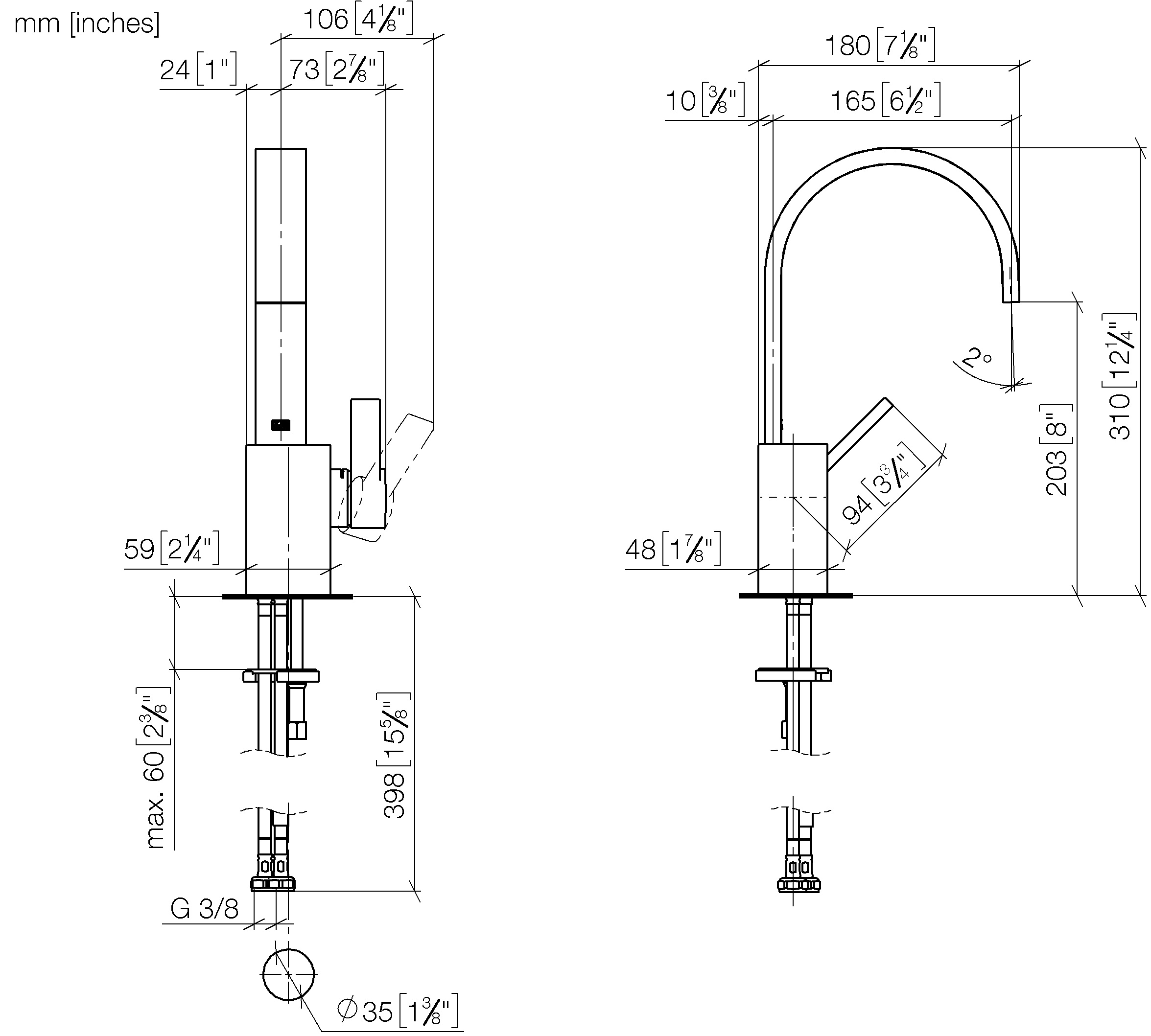 - Opbouwhoogte onderkant kraanmondstuk: 202 mm