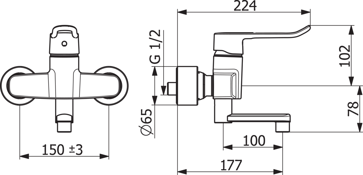 Wandmkr draaib uitl spr177mm lang beugel hendel HANSACLINICA HANSA