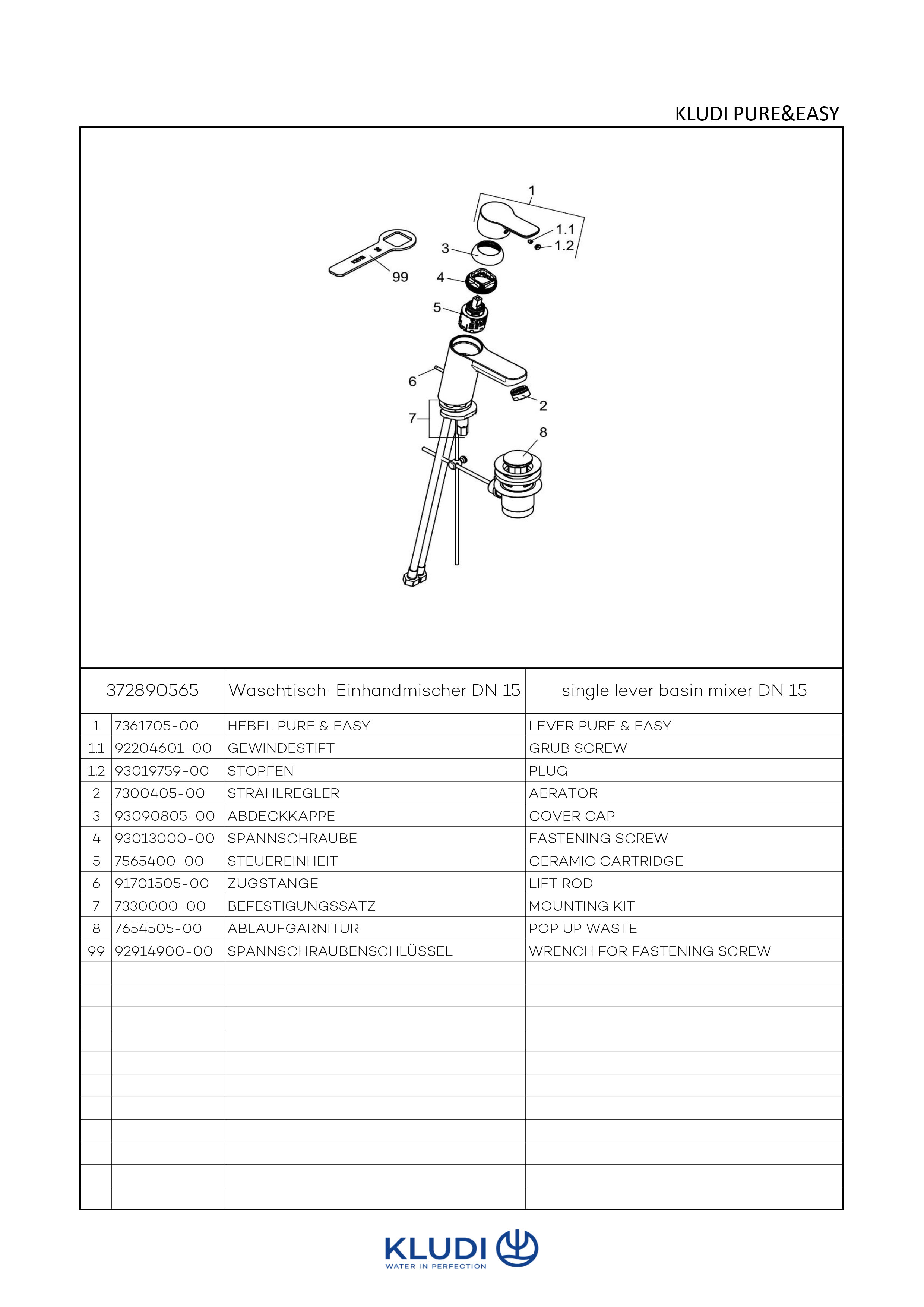 Pure&easy wastafelmengkraan met waste 70 eco chroom Kludi