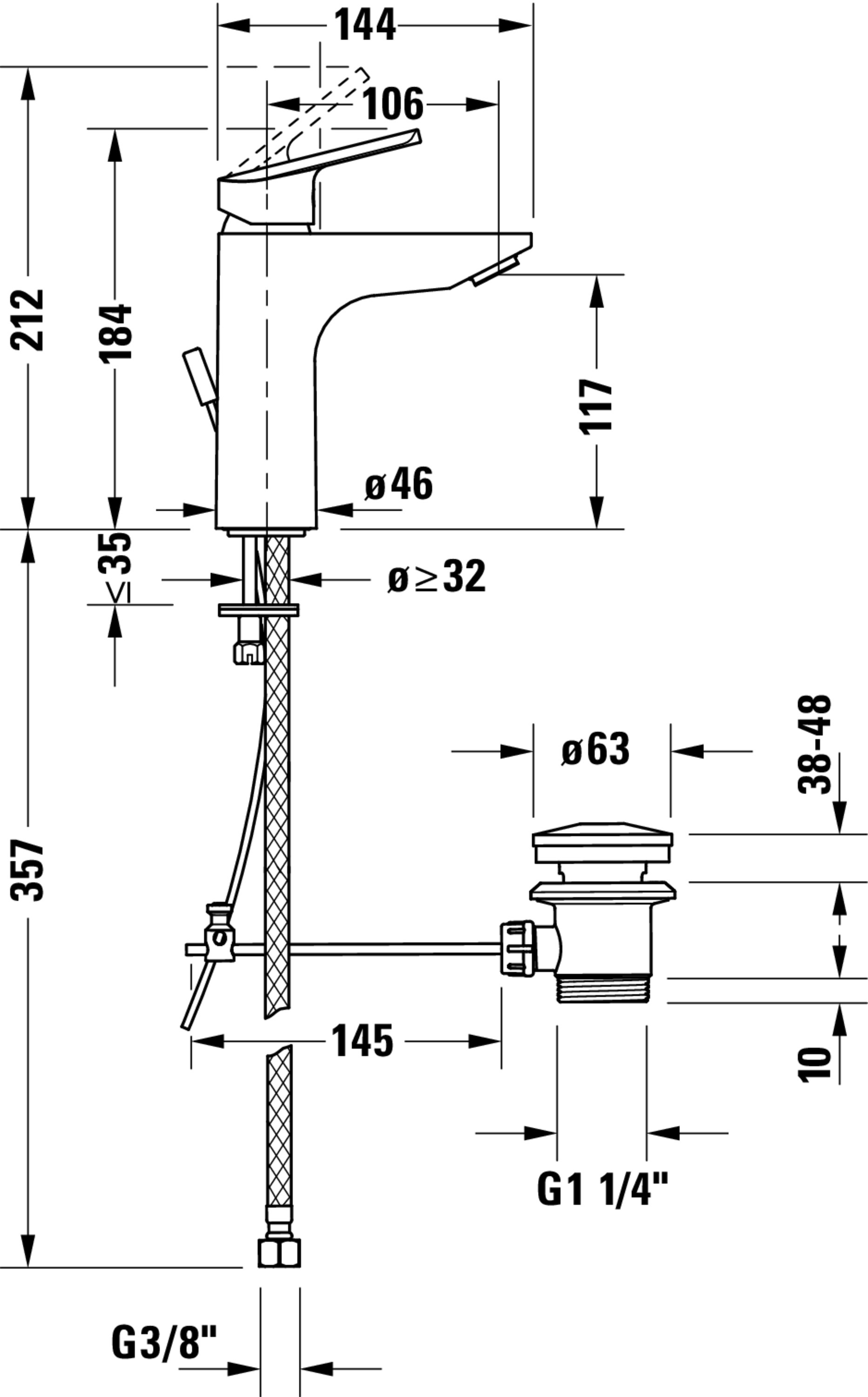 No.1 Wastafelmengkraan eengreeps Chroom 46x144x184mm 0,083l/s waste Duravit