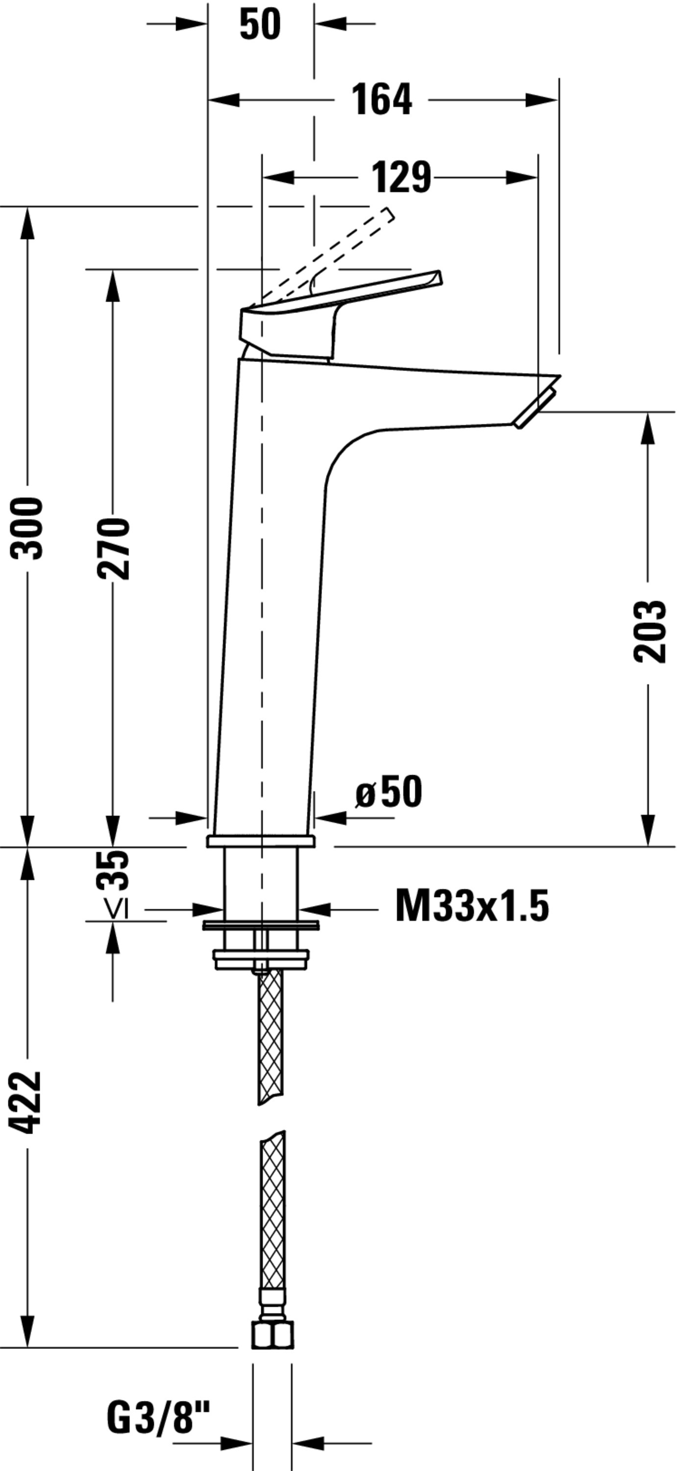 No.1 Wastafelmengkraan eengreeps Chroom 50x164x270mm 0,083l/s Duravit