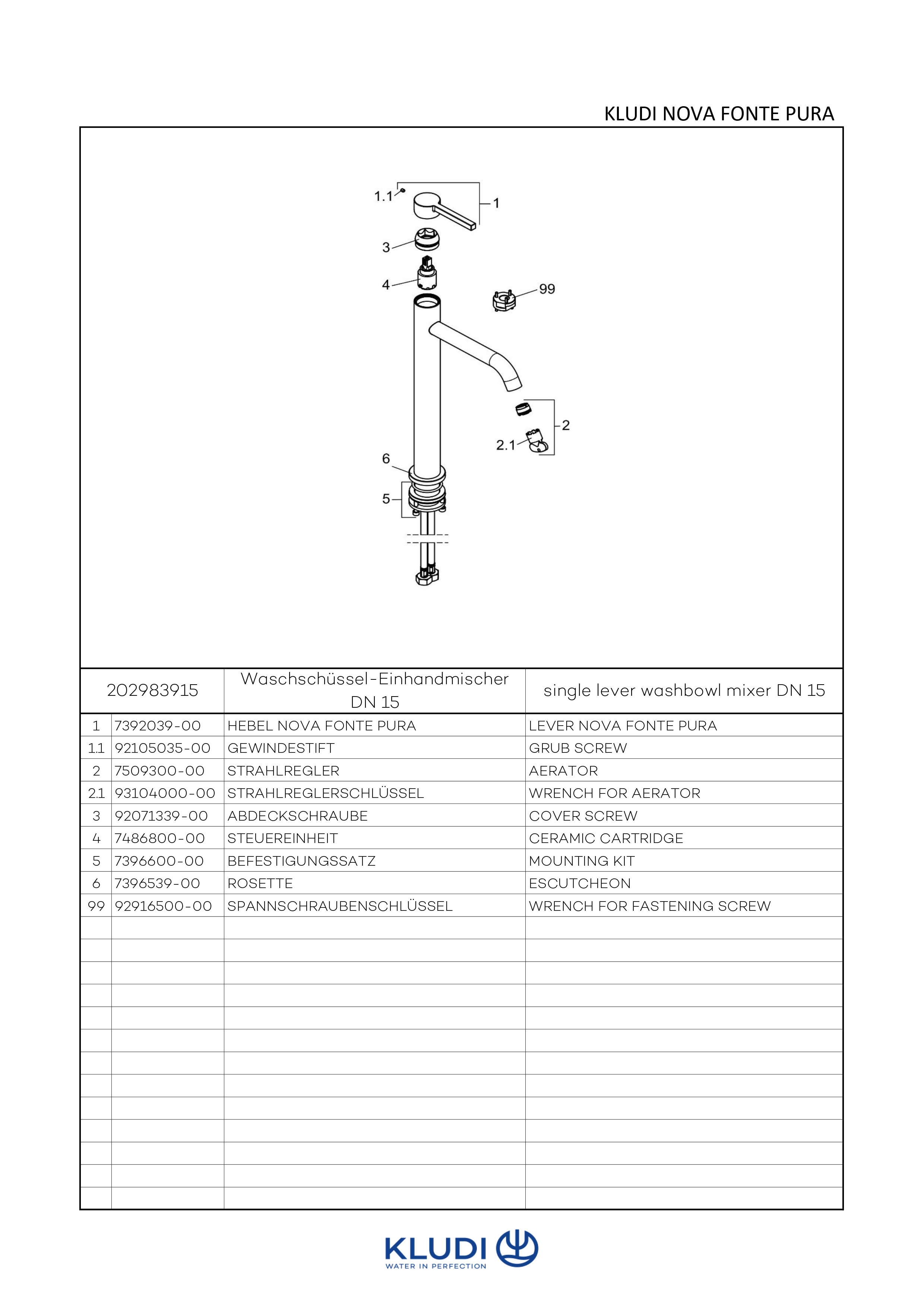 - Serie: KLUDI NOVA FONTE