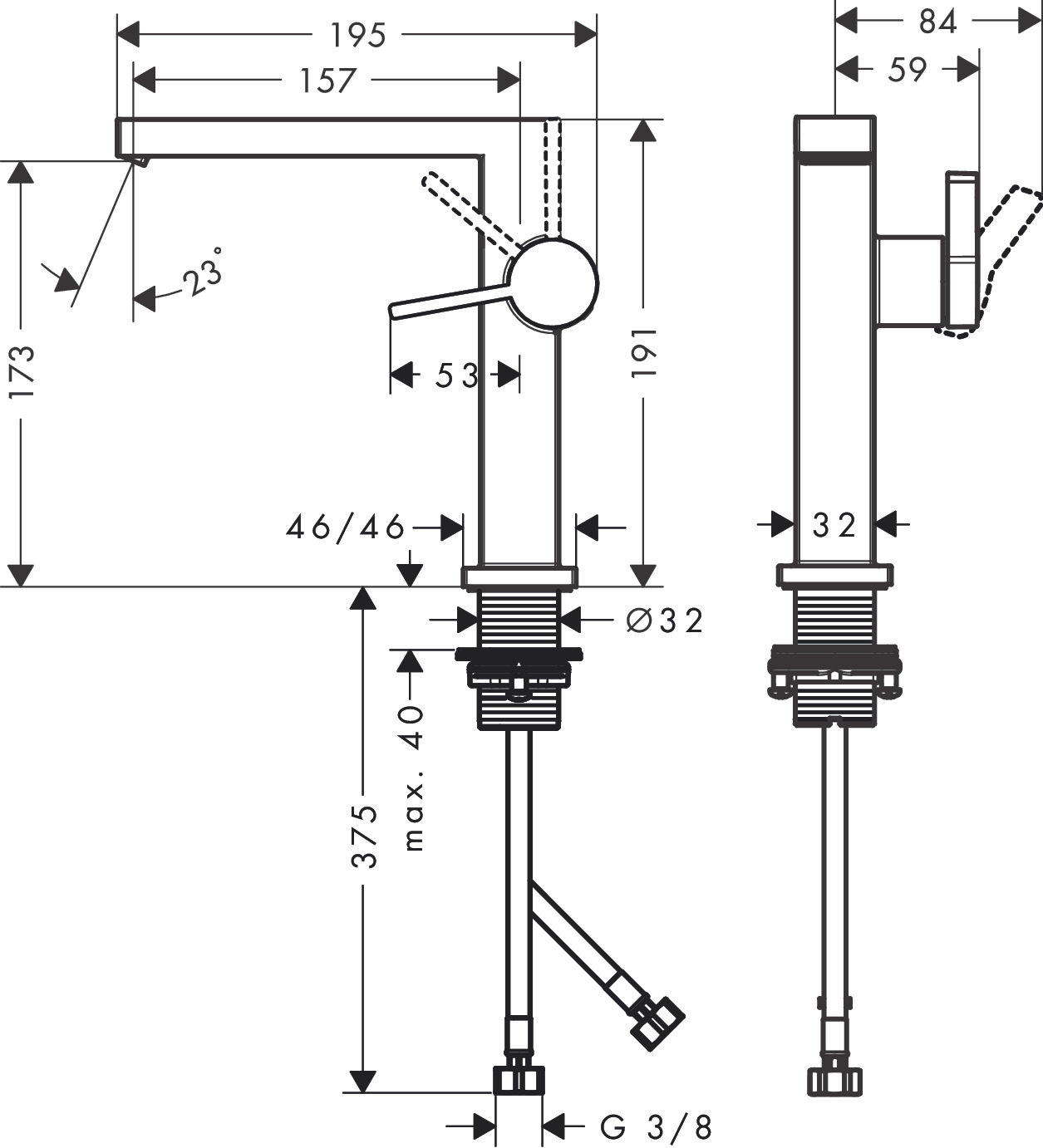 - Opbouwhoogte onderkant kraanmondstuk: 150 mm