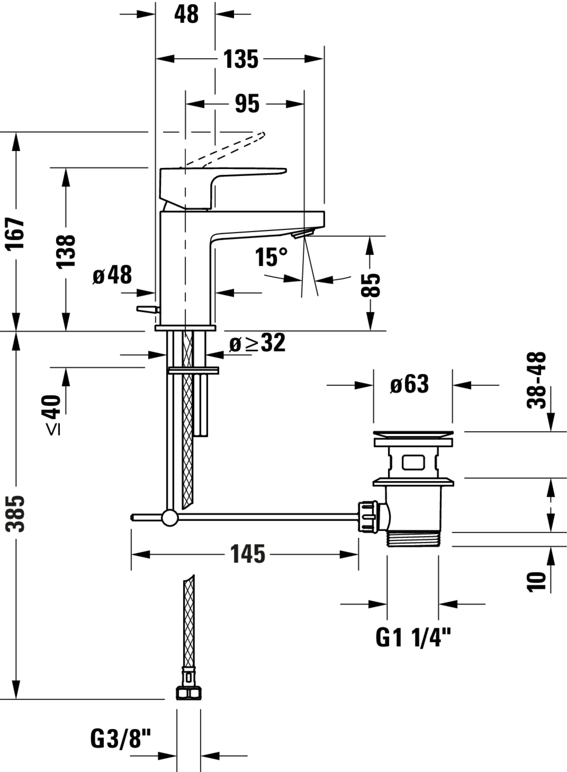 - Opbouwhoogte onderkant kraanmondstuk: 76 mm