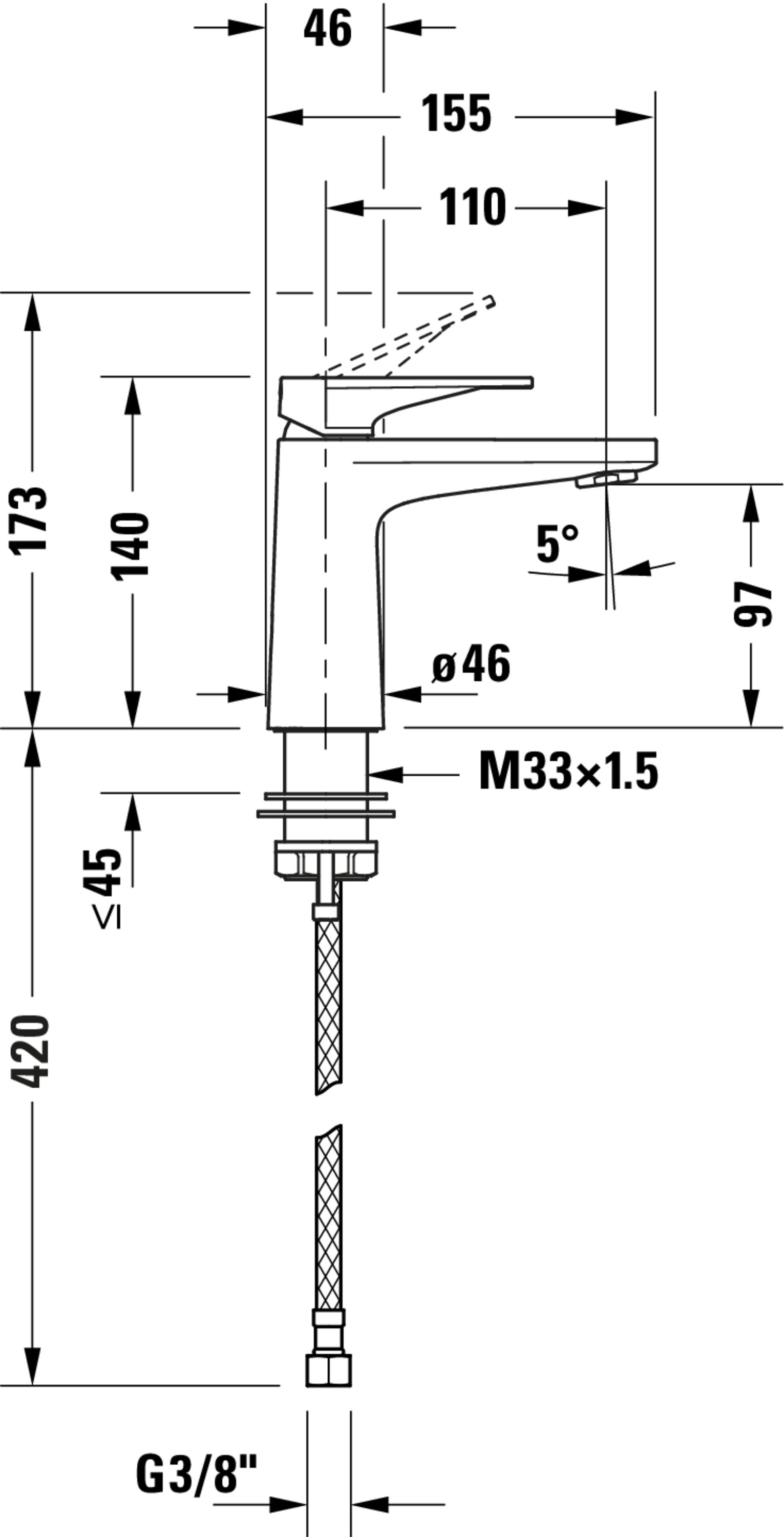 Tulum 1-hendel wastafelmengkraan S chroom fs 50x155x140mm Duravit
