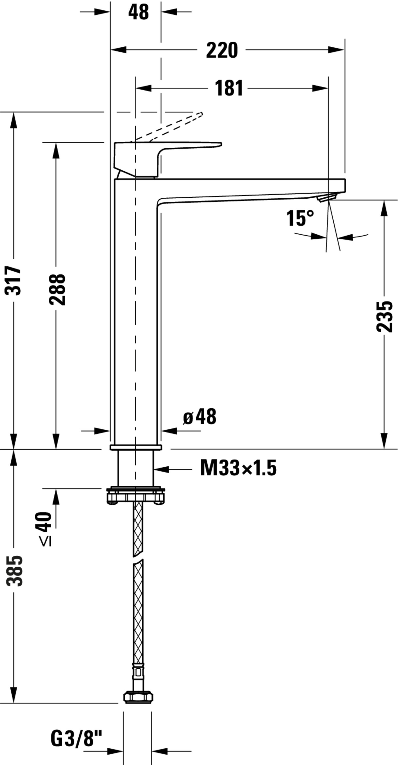 - Opbouwhoogte onderkant kraanmondstuk: 235 mm