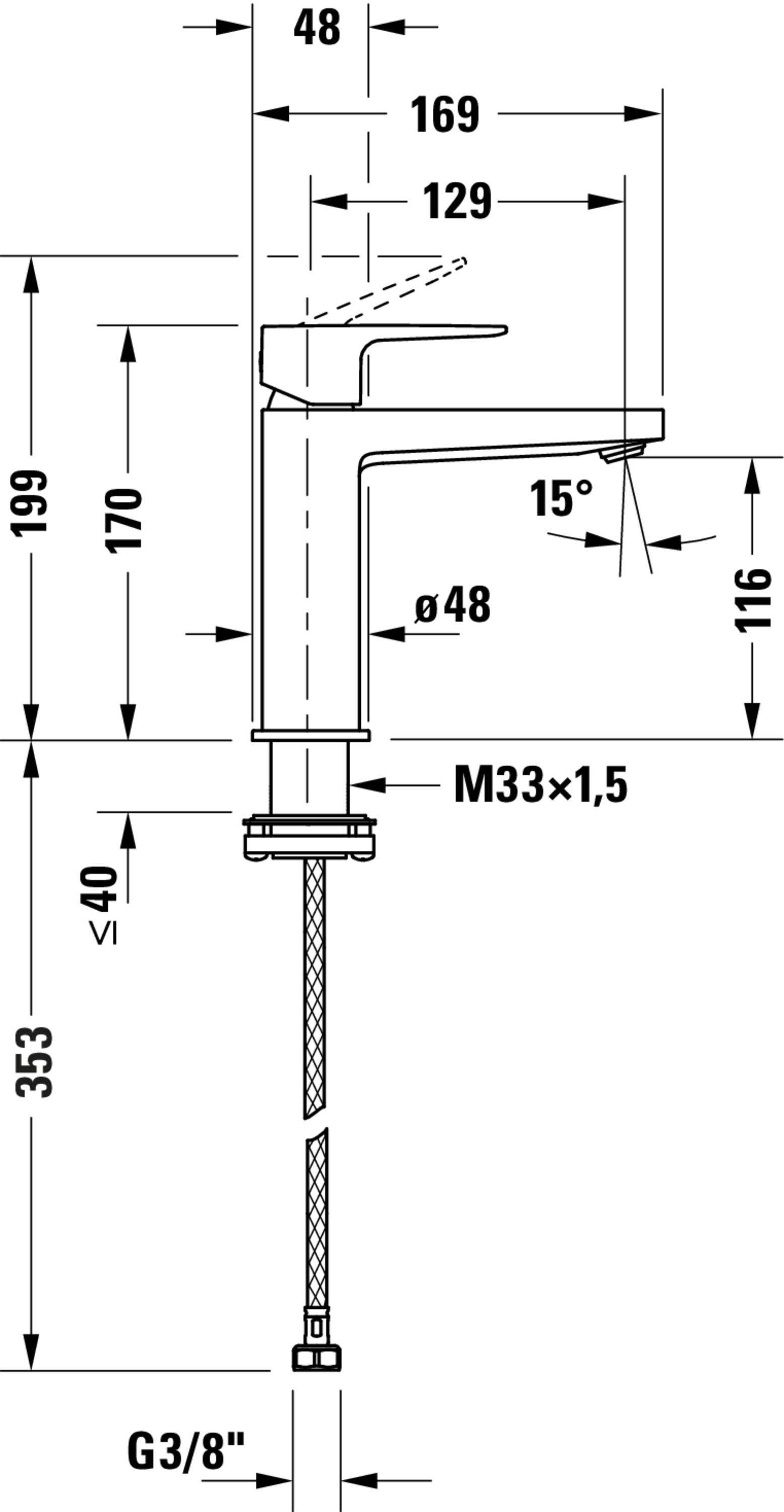 - Opbouwhoogte onderkant kraanmondstuk: 116 mm