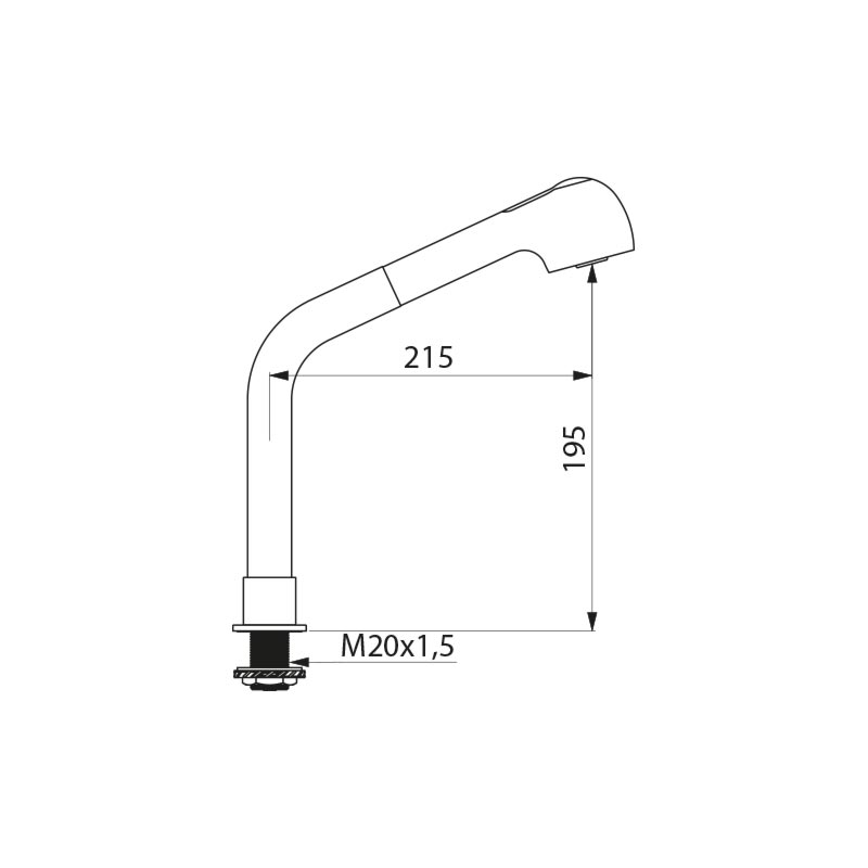 - Opbouwhoogte onderkant kraanmondstuk: 200 mm