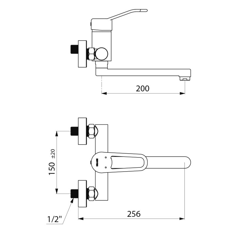Muurmengkraan draaibare uitl L.200 open greep S-kop Delabie