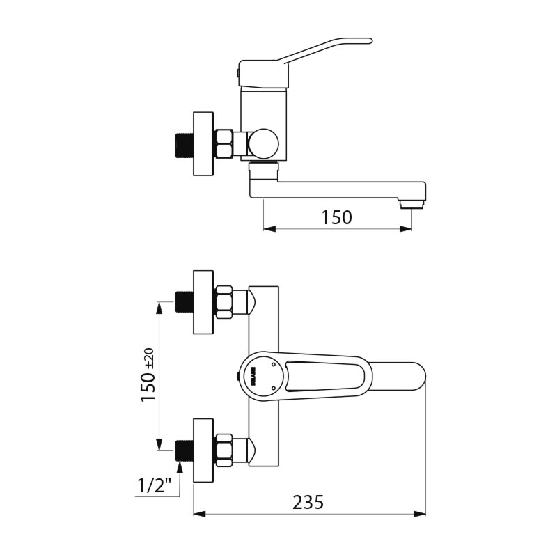 Muurmengkraan voor spoelt draaibare uitl L150open grS-kop Delabie