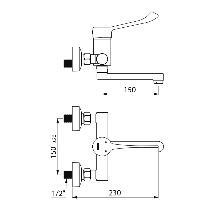 Muurmengkraan voor spoelt draaibare uitl L150hyg hendS/C Delabie