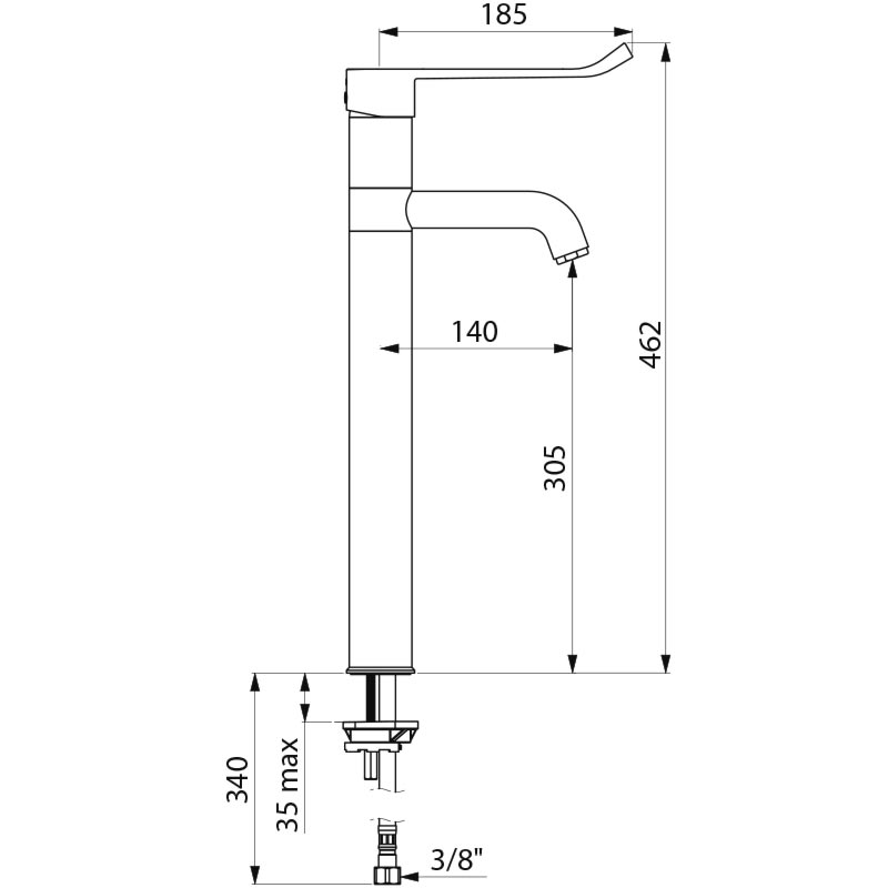 - Opbouwhoogte onderkant kraanmondstuk: 305 mm