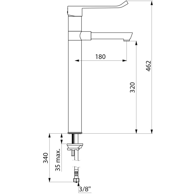 • Opbouwhoogte onderkant kraanmondstuk: 320 mm