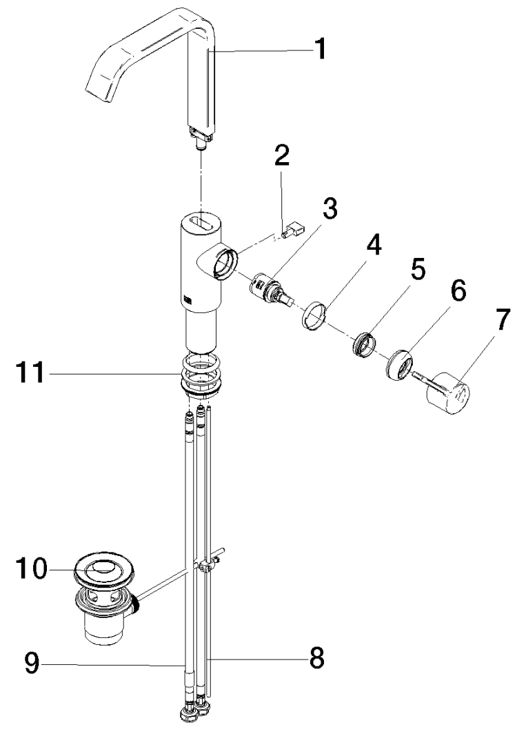 - Benodigde vrije ruimte achter kraan: 10 mm