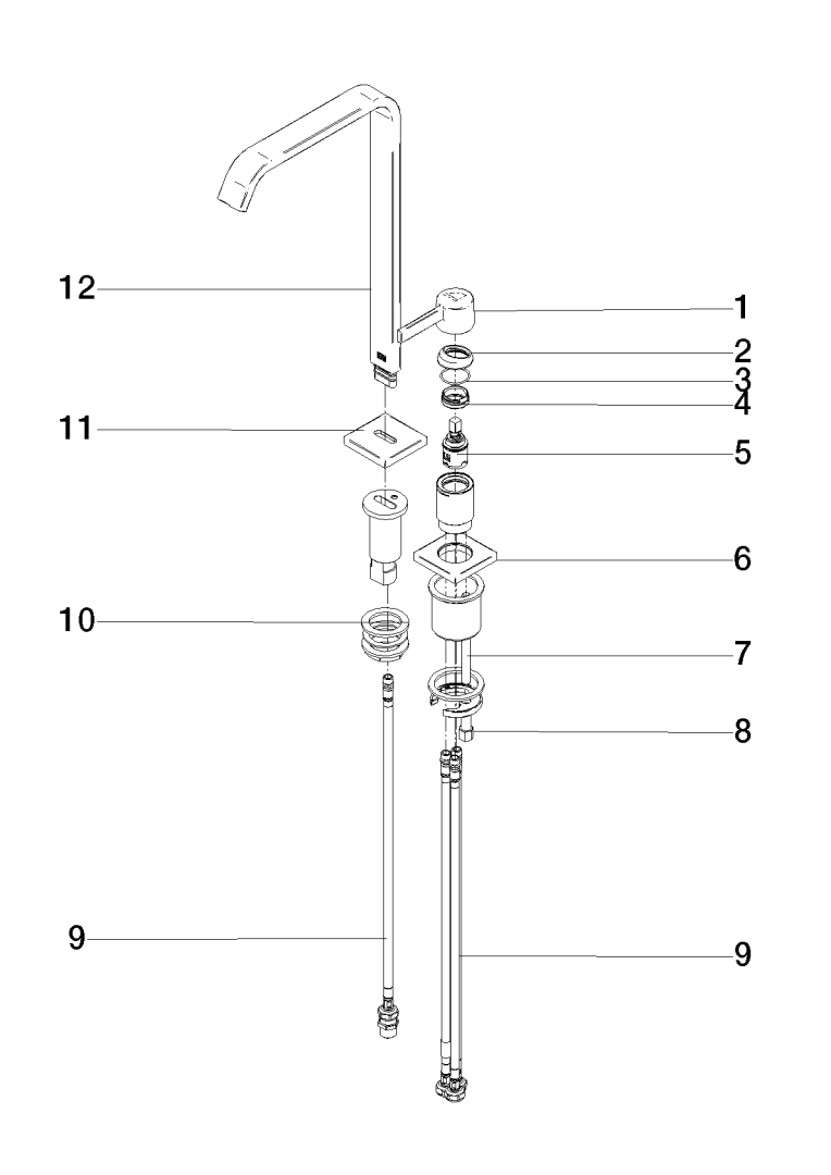- Benodigde vrije ruimte achter kraan: 10 mm
