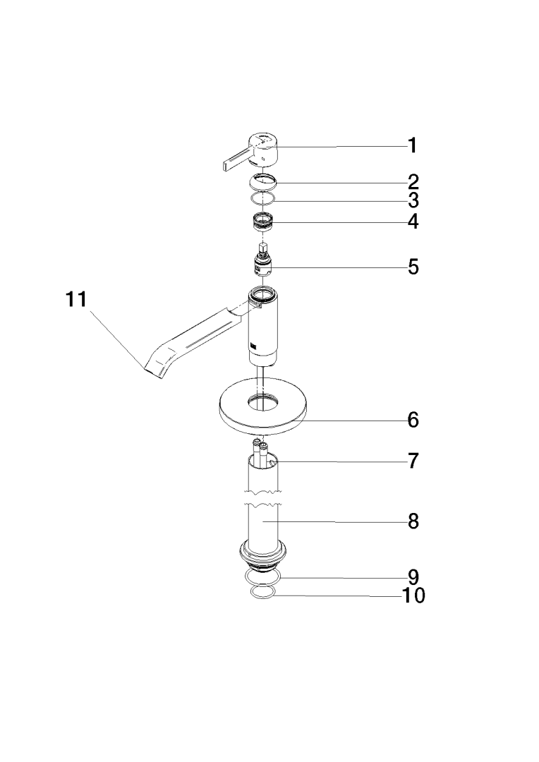 - Opbouwhoogte onderkant kraanmondstuk: 970 mm