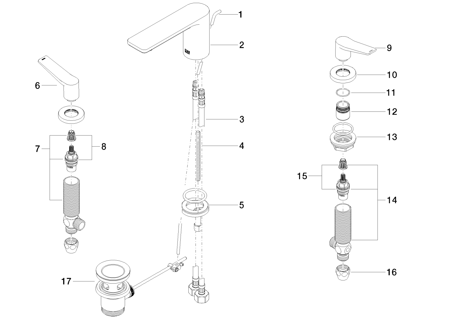 LISSÉ 3-gats wastafelmgkrn afvoer. Dark Platinum gebors. Dornbracht